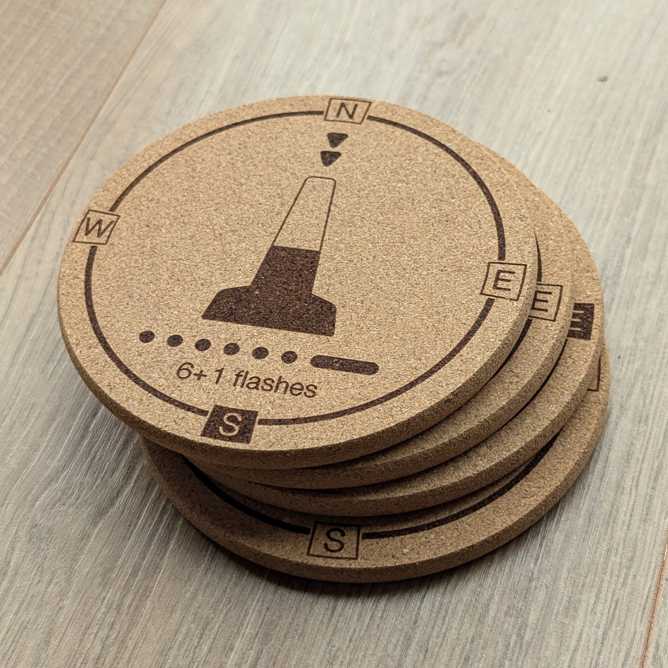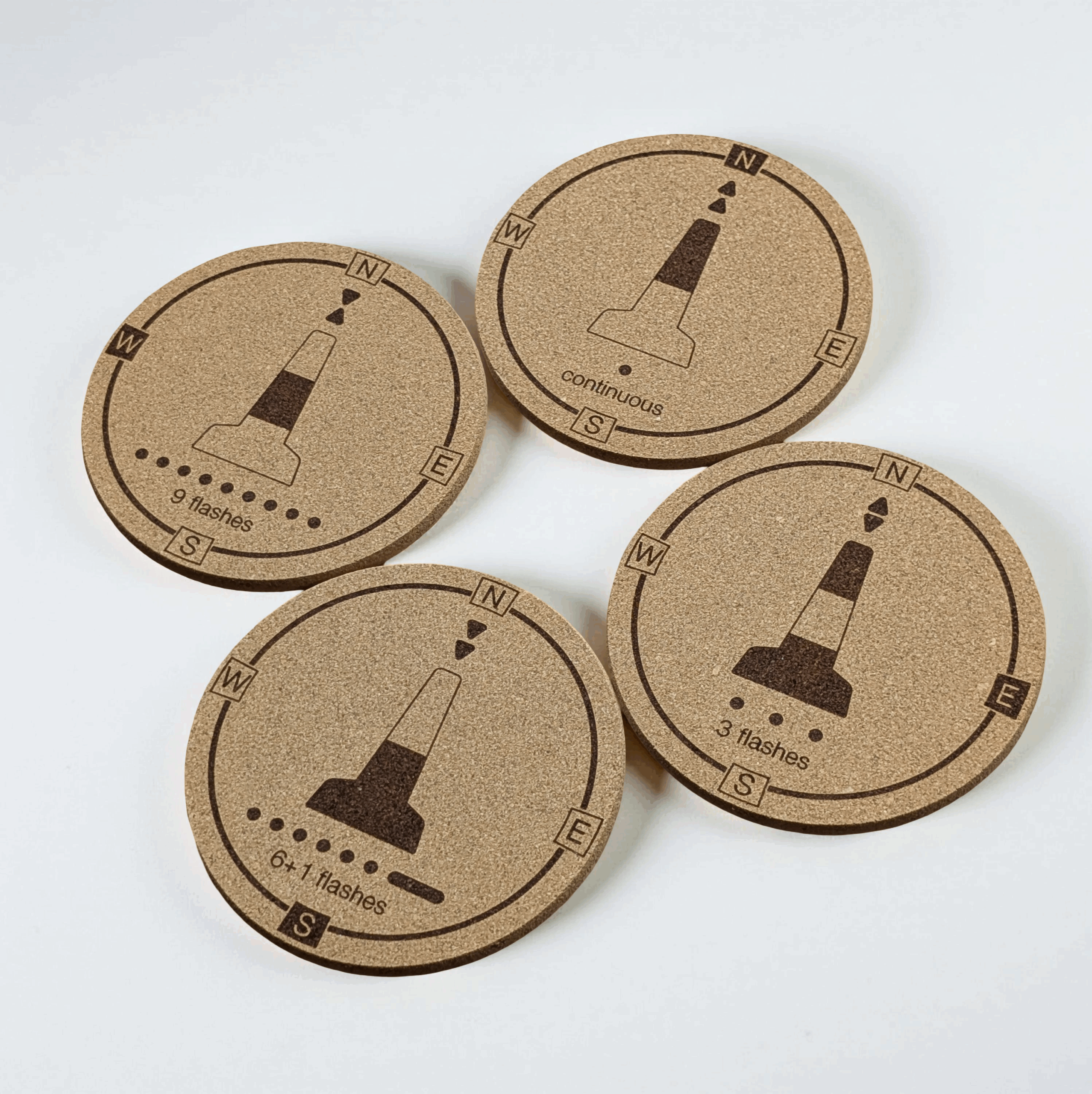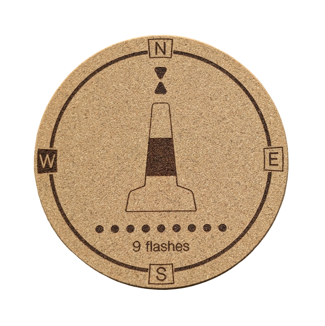 Put down your drink, but keep your mind sharp! The Cork Coaster Set is the perfect place to rest your Sailor’s Pint or any other ship-shape beverage. It’s more than just a coaster; it’s a quick reference guide designed by a sailor, for sailors. The four-piece set makes learning or testing your knowledge of the four Cardinal Buoys simple and fun, using clever compass and clock analogies to lock in those top marks, colours, lights, and sequences.